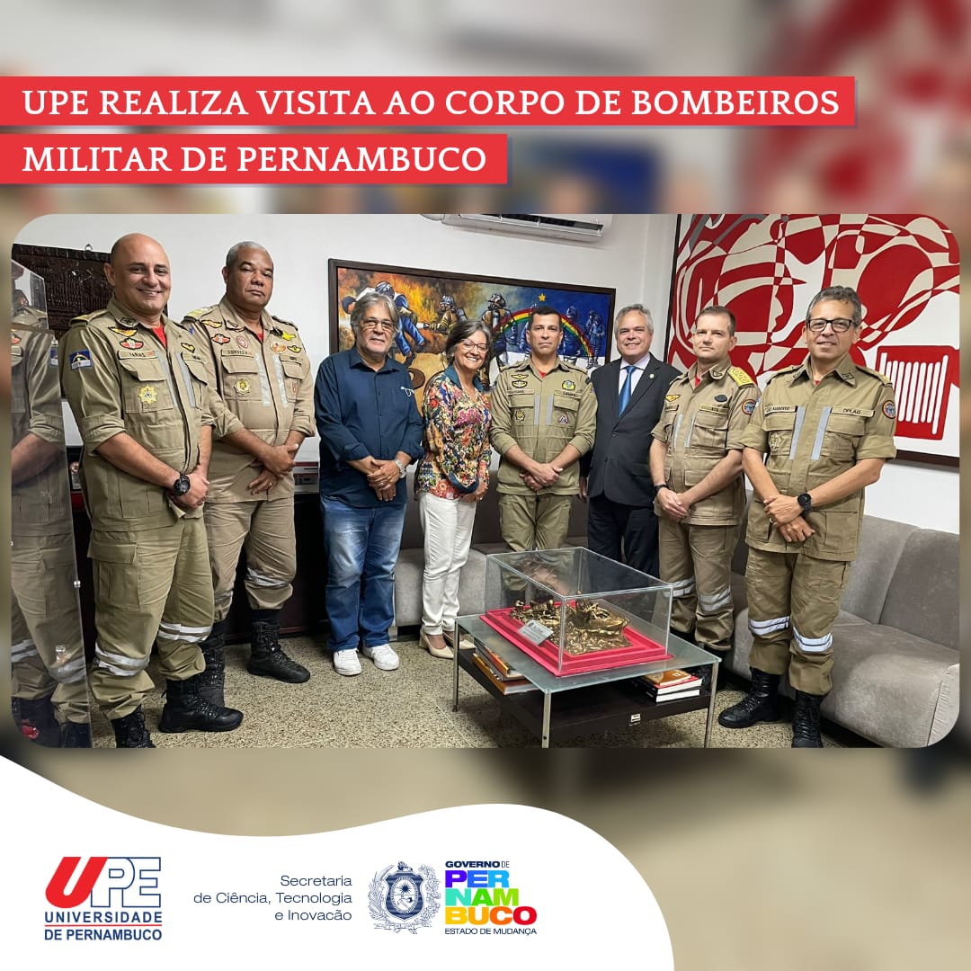 Nesta quinta-feira (15/06), a Reitora e Vice-reitor da Universidade de Pernambuco (UPE), Profª Socorro Cavalcanti e Prof. José Roberto de Souza, respectivamente, realizaram visita ao Comando Geral do Corpo de Bombeiros Militar de Pernambuco. Durante a reunião foi debatido sobre os encaminhamentos dos projetos de prevenção e combate a incêndios das instalações das unidades da UPE, localizadas em todas as regiões do Estado. Também foi discutido sobre as possibilidades de execução de cursos e projetos de extensão universitária em conjunto com a corporação.