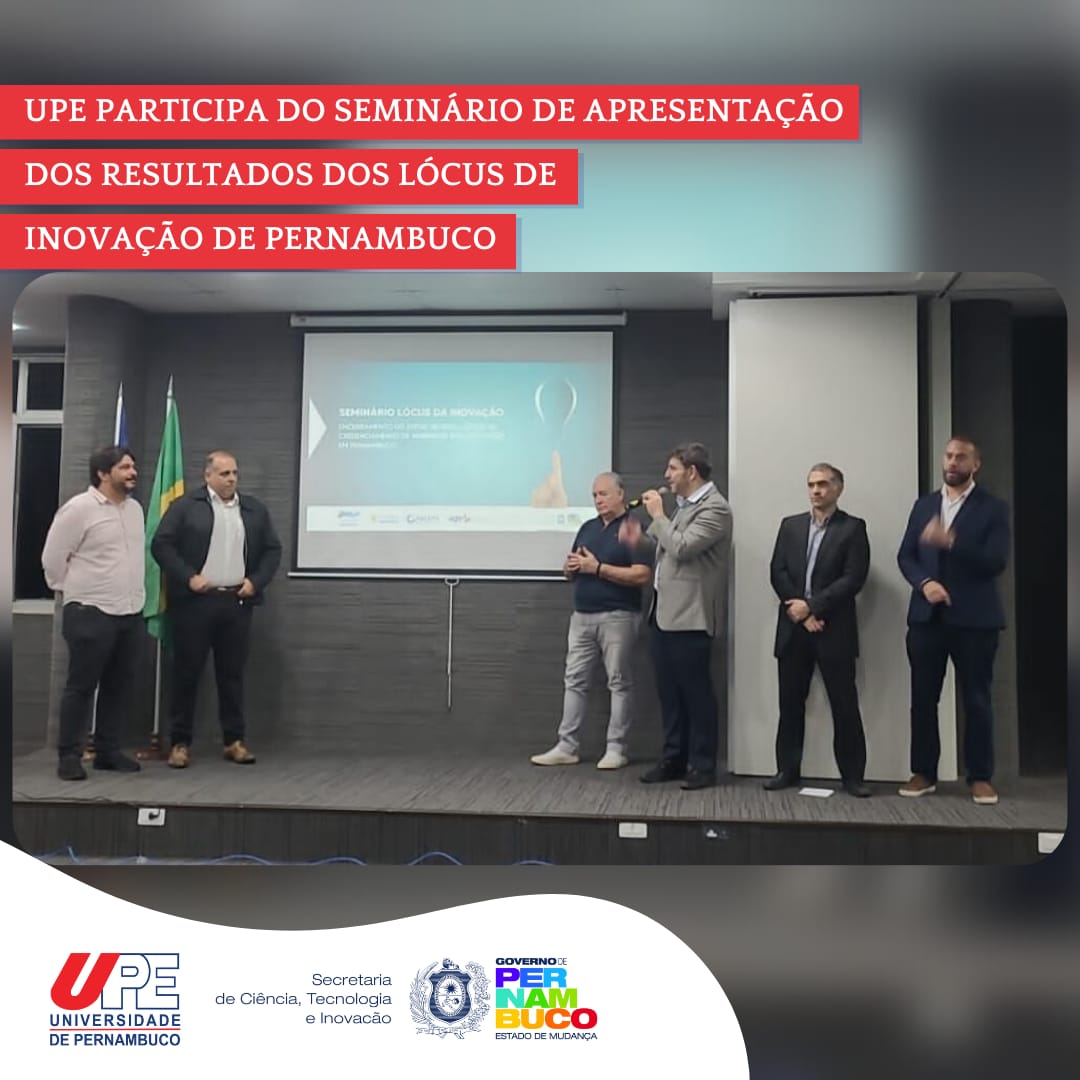 A Universidade de Pernambuco (UPE), através do Pró-reitor de Pós-Graduação, Pesquisa e Inovação (PROPEGI), Prof. Carmelo Bastos, participou da cerimônia que apresentou resultados dos 15 lócus de inovação implementados em Pernambuco. O programa foi criado em 2020, com o objetivo de criar uma rede de sistemas de inovação no Estado, com caráter setorial e territorial. Com a conclusão do edital, em um ciclo de dois anos, foram entregues 15 Lócus, os quais a Universidade de Pernambuco atua em sua maioria.