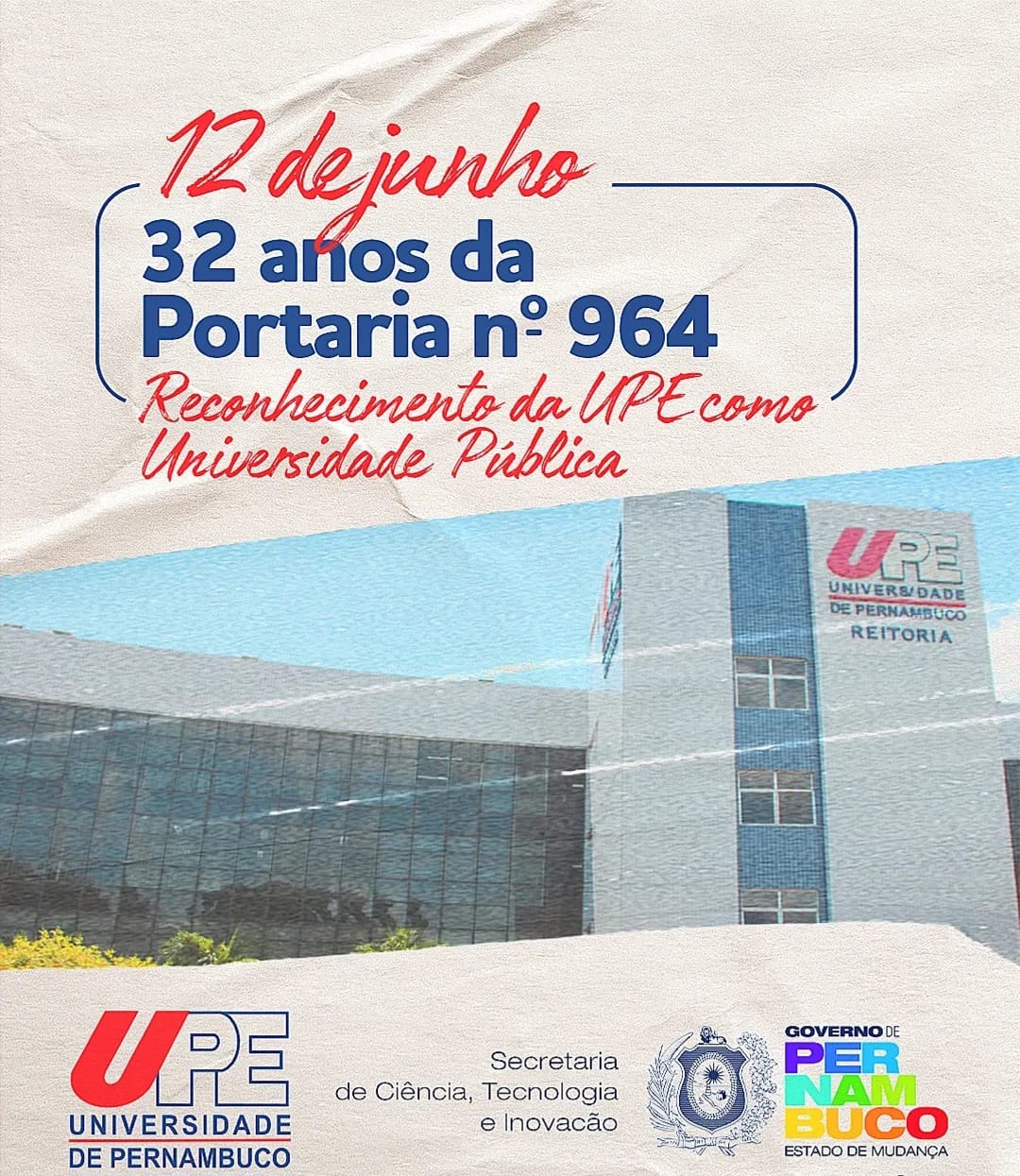 A Universidade de Pernambuco agradece a comunidade acadêmica pela construção da sua História, a exemplo da conquista como universidade pública, instituída em 12 de junho de 1991.