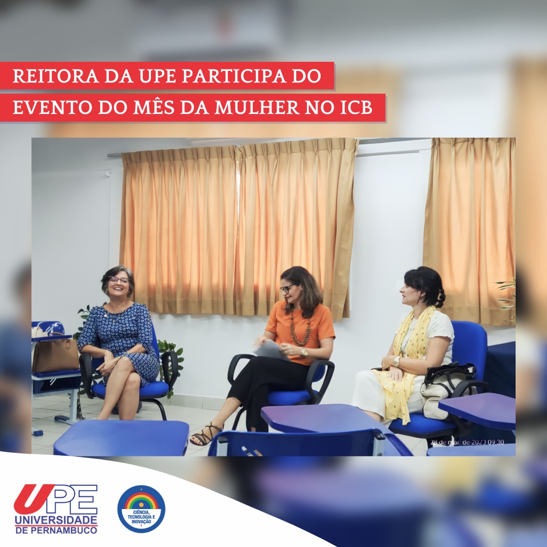 A Reitora da Universidade de Pernambuco participou das atividades do Mês da Mulher, promovido pelo Instituto de Ciências Biológicas da UPE. O encontro debateu a participação feminina na acadêmica e as ações desenvolvidas na área da Ciência e tecnologia. A Profa. Maria do Socorro Cavalcanti compôs a mesa-redonda “Mulheres ICB na Academia Pernambucana de Ciência (APC)”, juntamente com a Profa. Patrícia Moura. A atividade foi coordenada pela Profa. Daniele Viana.