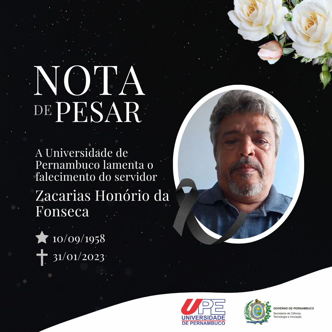 A comunidade acadêmica da Universidade de Pernambuco externa seu mais profundo pesar em virtude do falecimento de Zacarias Honório da Fonseca, servidor da Faculdade de Ciências Médicas (FCM) desde 1978. O velório ocorreu no auditório da FCM.
