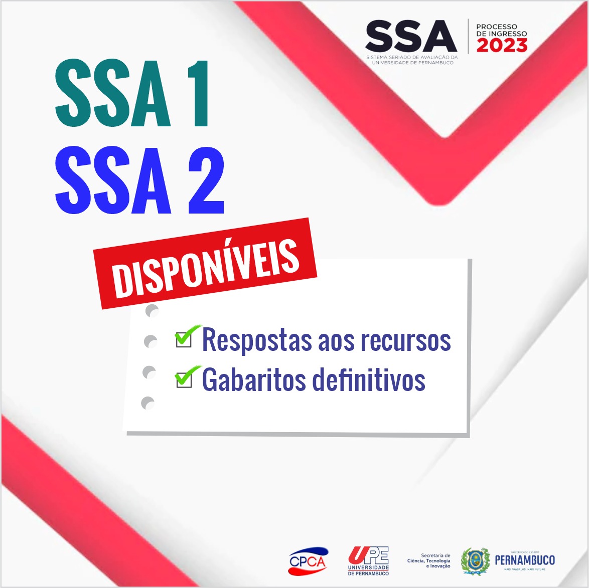 A Comissão Permanente de Concursos Acadêmicos (CPCA) da Universidade de Pernambuco (UPE) divulgou os gabaritos definitivos e as respostas aos recursos das provas da 1ª e 2ª fases do Sistema Seriado de Avaliação (SSA 1 e SSA 2).