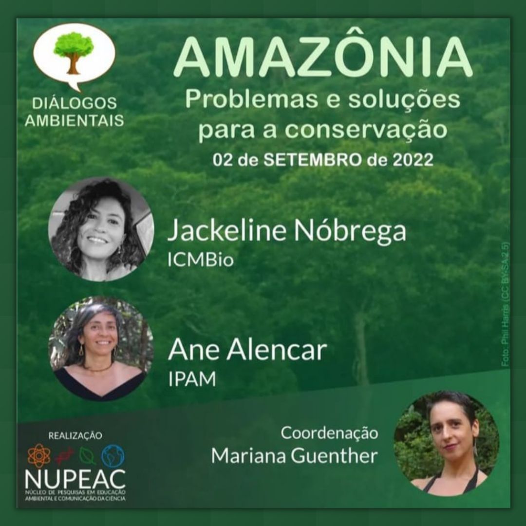 As convidadas para esse debate são Jackeline Nóbrega, engenheira florestal e analista ambiental do Instituto Chico Mendes de Conservação da Biodiversidade (ICMBio), atuando como chefe da Reserva Extrativista Tapajós-Arapiuns, e Ane Alencar, geógrafa e diretora de ciências da ONG Instituto de Pesquisa Ambiental da Amazônia (IPAM).