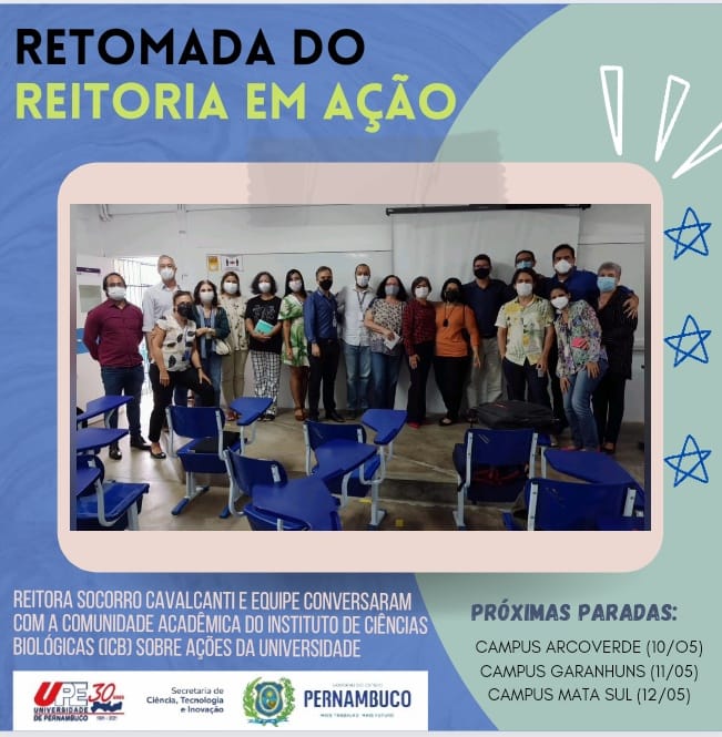 Nesta retomada, a próxima visita será no Campus Arcoverde, no dia 10 de maio. Na sequência a reitora e equipe estarão no Campus Garanhuns (dia 11) e Campus Mata Sul (dia 12).