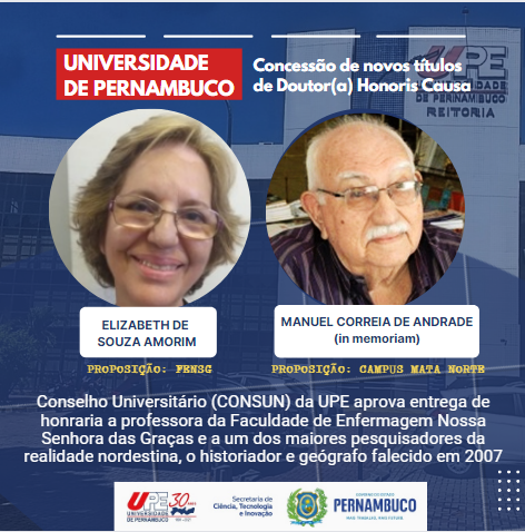 Conselho Universitário da UPE aprova concessão de títulos de Doutor(a) Honoris Causa aos professores Elizabeth de Souza Amorim e Manuel Correia de Andrade
