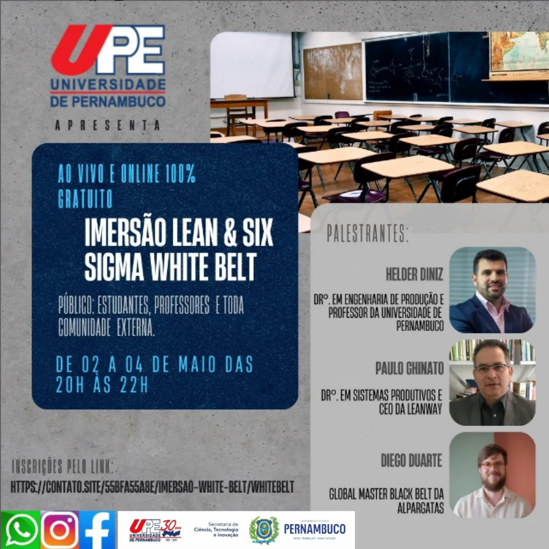 O curso de Bacharelado em Administração do Campus Mata Sul da Universidade de Pernambuco promove, de 2 a 4 de maio, uma série de palestras gratuitas online sobre Lean & Six Sigma White Belt.