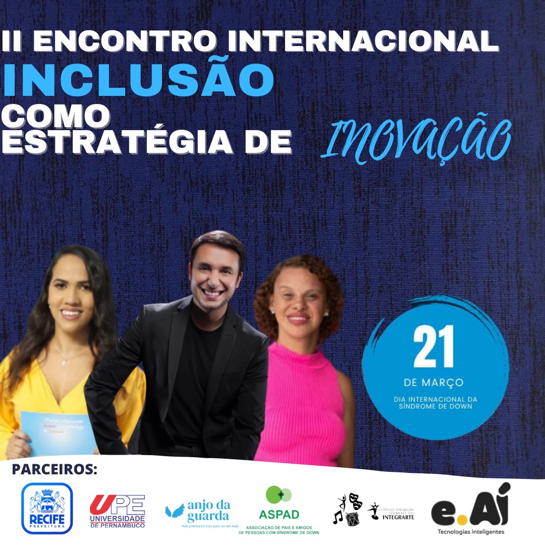 O Projeto Inclusão do Amor, a Secretaria de Esporte e Lazer da cidade do Recife e a Universidade Federal de Pernambuco (UFPE) realizam, no dia 21 de março (segunda-feira), o 2º Encontro Internacional Inclusão como Estratégia de Inovação. O evento será das 14 às 17 horas na Concha Acústica da UFPE.