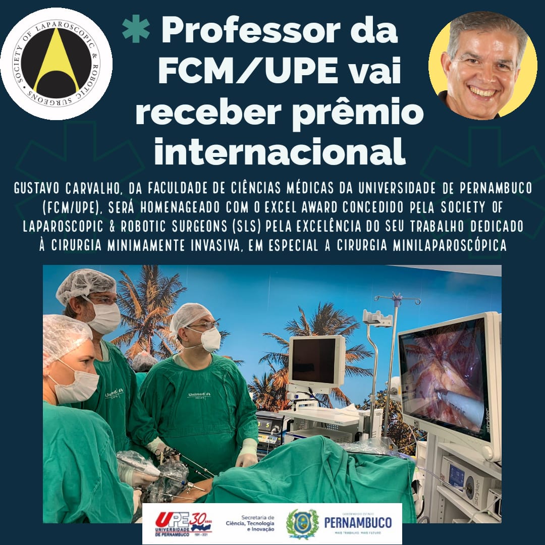 O professor da Faculdade de Ciências Médicas da Universidade de Pernambuco (FCM/UPE), Gustavo Carvalho, vai receber um prêmio internacional pela excelência do seu trabalho dedicado à cirurgia minimamente invasiva, em especial a cirurgia minilaparoscópica.