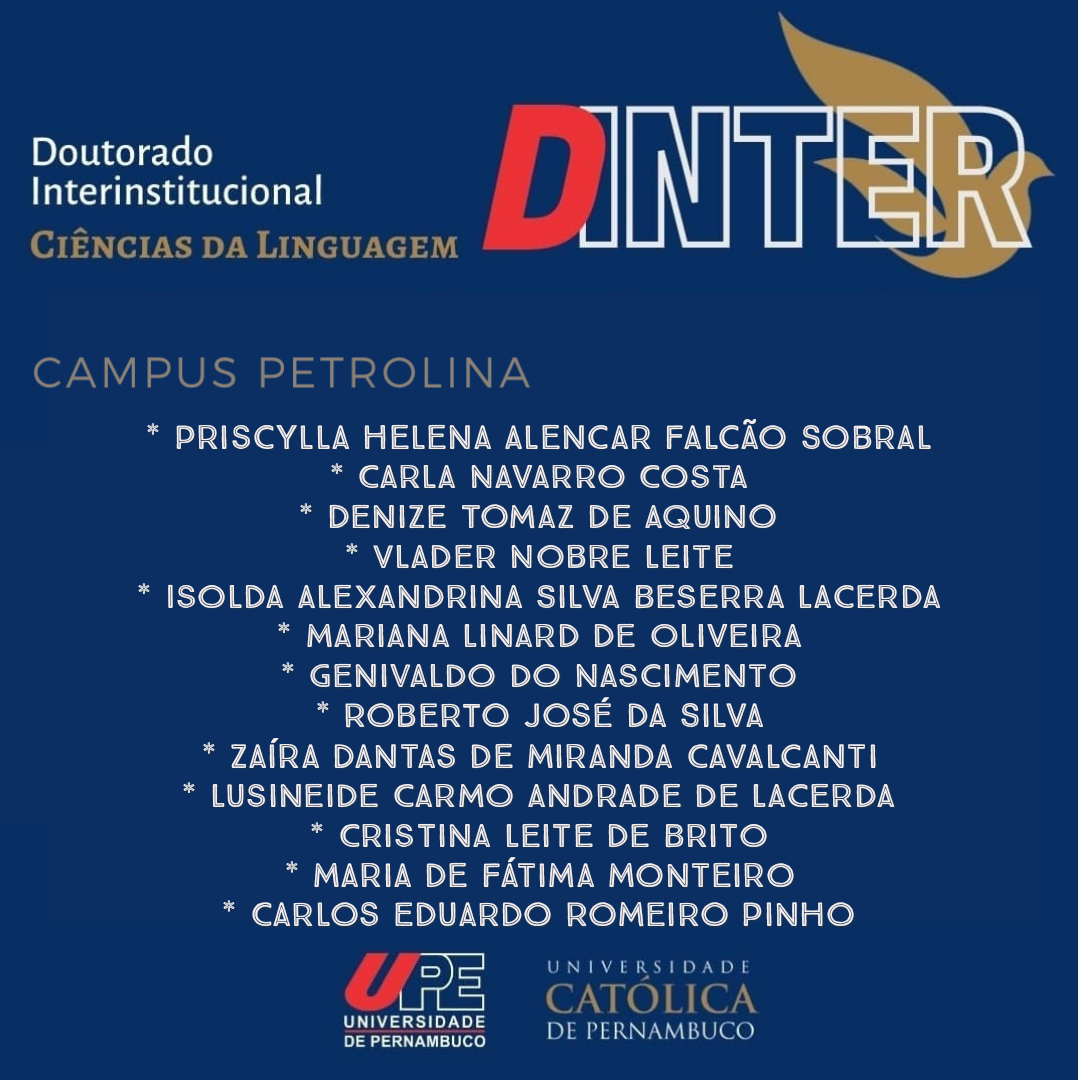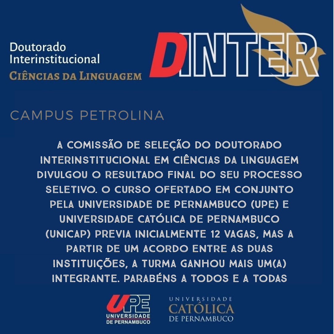 A comissão de seleção do doutorado interinstitucional (DINTER) em Ciências da Linguagem divulgou o resultado final do seu processo seletivo.