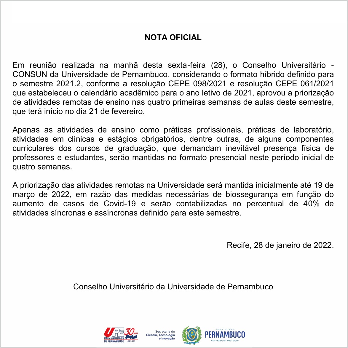 A Pró-reitoria de Graduação (PROGRAD) da Universidade de Pernambuco divulgou, nesta sexta-feira (28), o resultado preliminar dos selecionados no edital de Mobilidade Acadêmica Externa 2021.2.