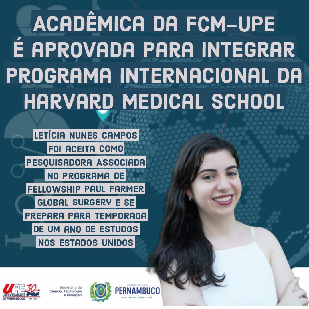 Acadêmica da FCM-UPE é aprovada para integrar programa internacional da Harvard Medical School