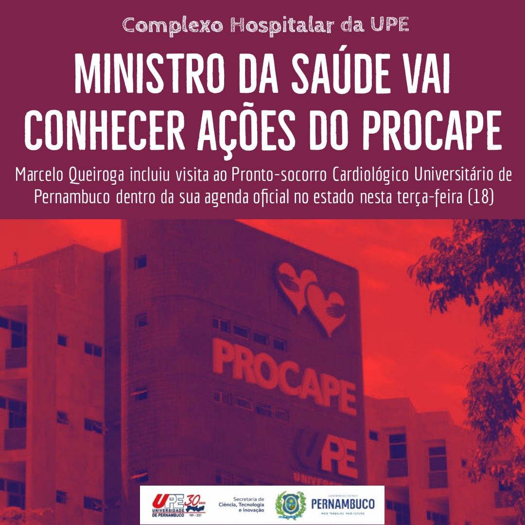 Maior hospital de cardiologia das regiões Norte-Nordeste e o segundo do Brasil, o Pronto-socorro Cardiológico Universitário de Pernambuco (Procape) será visitado, na tarde desta terça-feira (18), pelo ministro da Saúde Marcelo Queiroga.