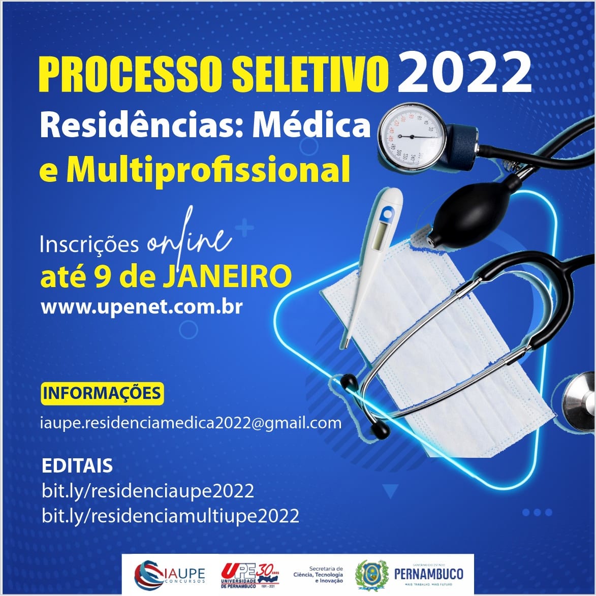 O certame será realizado pelo Instituto de Apoio à Universidade de Pernambuco (IAUPE) e as inscrições podem ser realizadas até 9 de janeiro de 2022, exclusivamente pela internet, pelo endereço eletrônico http://www.upenet.com.br.