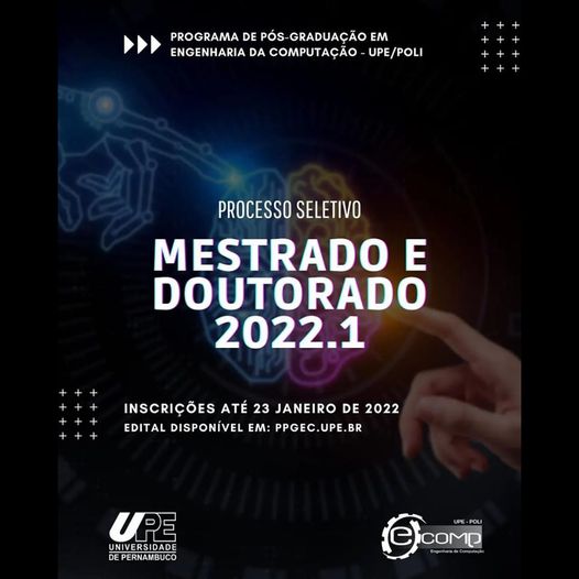 Estão abertas até o dia o 23 de janeiro as inscrições para mestrado e doutorado do Programa de Pós-Graduação em Engenharia da Computação da Escola Politécnica da Universidade de Pernambuco (Poli/UPE).
