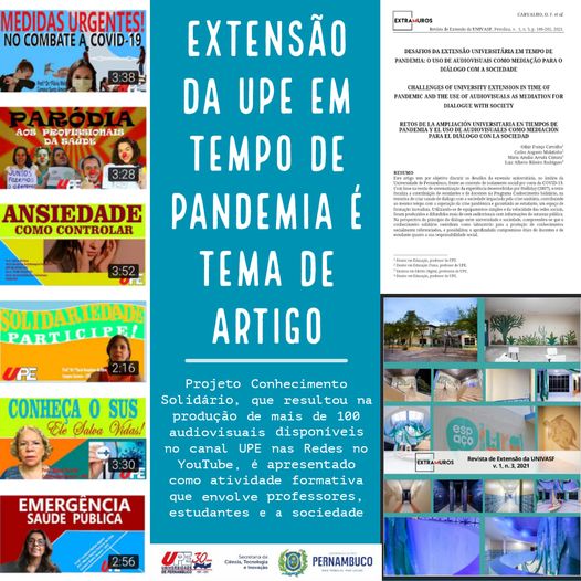 Extensão da UPE em tempo de pandemia é tema de artigo