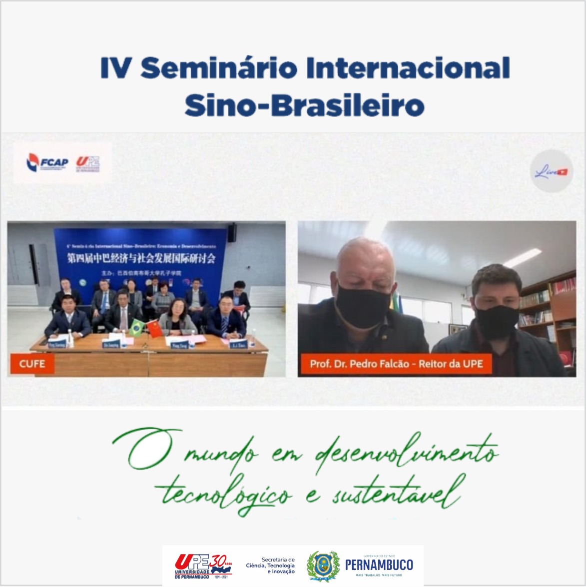Na manhã desta quinta-feira (18/11) aconteceu a abertura, de forma remota, do 4º Seminário Internacional Sino-Brasileiro: Economia e Desenvolvimento promovido pelo Instituto Confúcio da Universidade de Pernambuco (UPE) e pela Universidade Central de Finanças e Economia de Pequim (CUFE). Em 2021, o tema do evento tem como foco: “O mundo em desenvolvimento tecnológico e sustentável”.