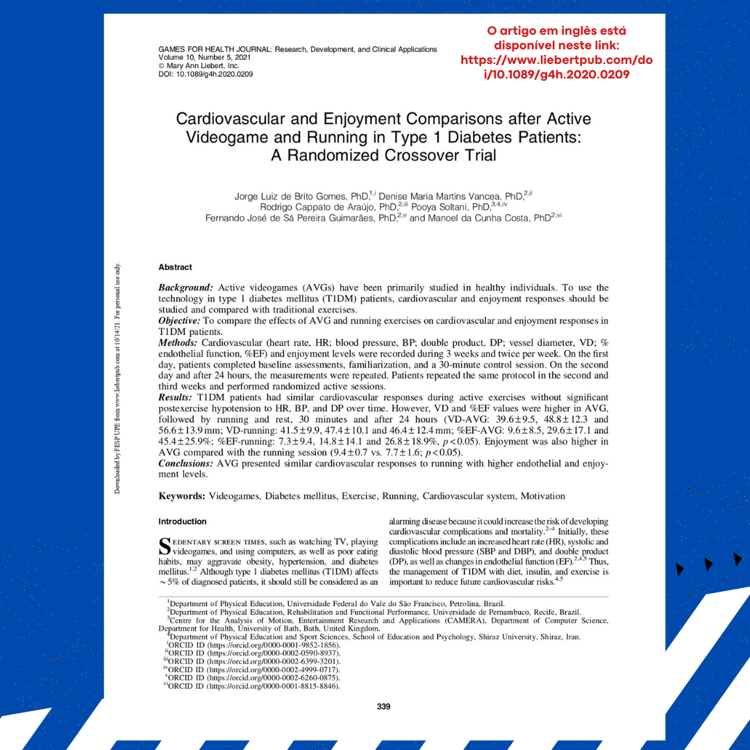 Um estudo realizado na Universidade de Pernambuco sobre os efeitos do uso de jogos ativos de videogame em pessoas portadoras de diabetes do tipo 1 (DM1) foi publicado na mais recente edição da Games for Health Journal. O texto ganhou ainda destaque no site da American Diabetes Association.