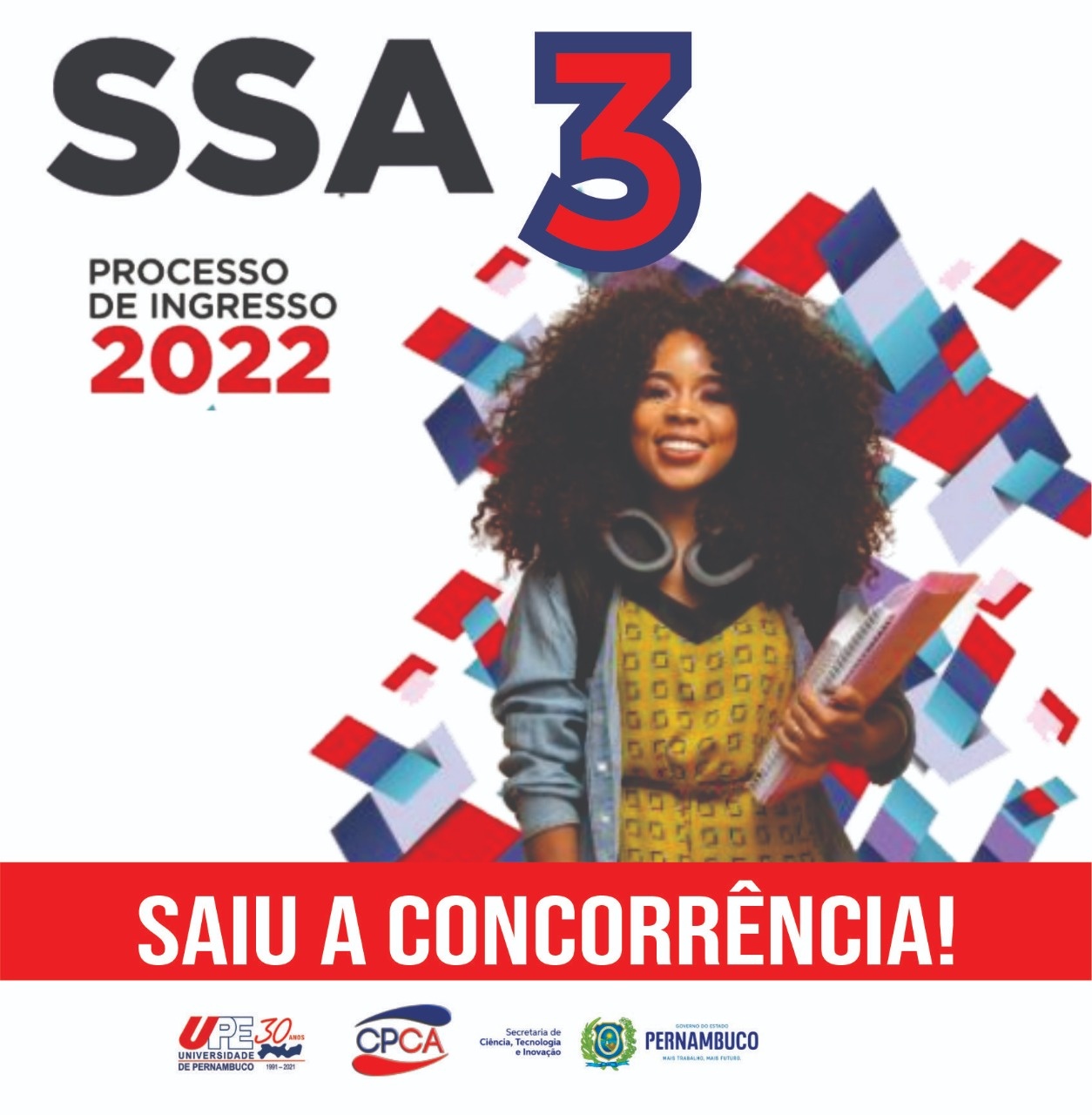 A concorrência do Processo de Ingresso 2022 da terceira fase do SSA da UPE foi divulgada nesta segunda-feira (4) pela Comissão Permanente de Concursos Acadêmicos da Universidade de Pernambuco (CPCA). As provas das três fases ocorrerão nos dias 5 e 12 (SSA 1 e SSA 2) e 19 e 20 de dezembro (SSA 3).