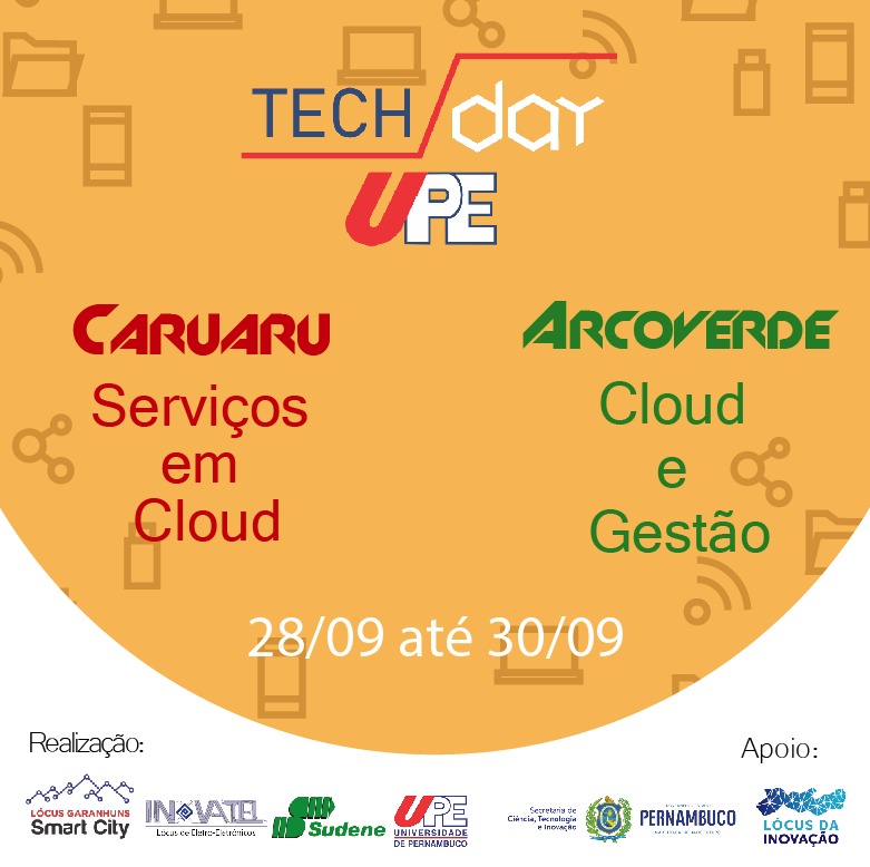 Realizado pela Universidade de Pernambuco nos seus campi Caruaru, Garanhuns e Arcoverde (Lócus Inovatel e Lócus Garanhuns Smart City) e patrocinado pela Superintendência de Desenvolvimento do Nordeste (Sudene), o TechDay UPE acontecerá nos dias 28, 29 e 30 de setembro.
