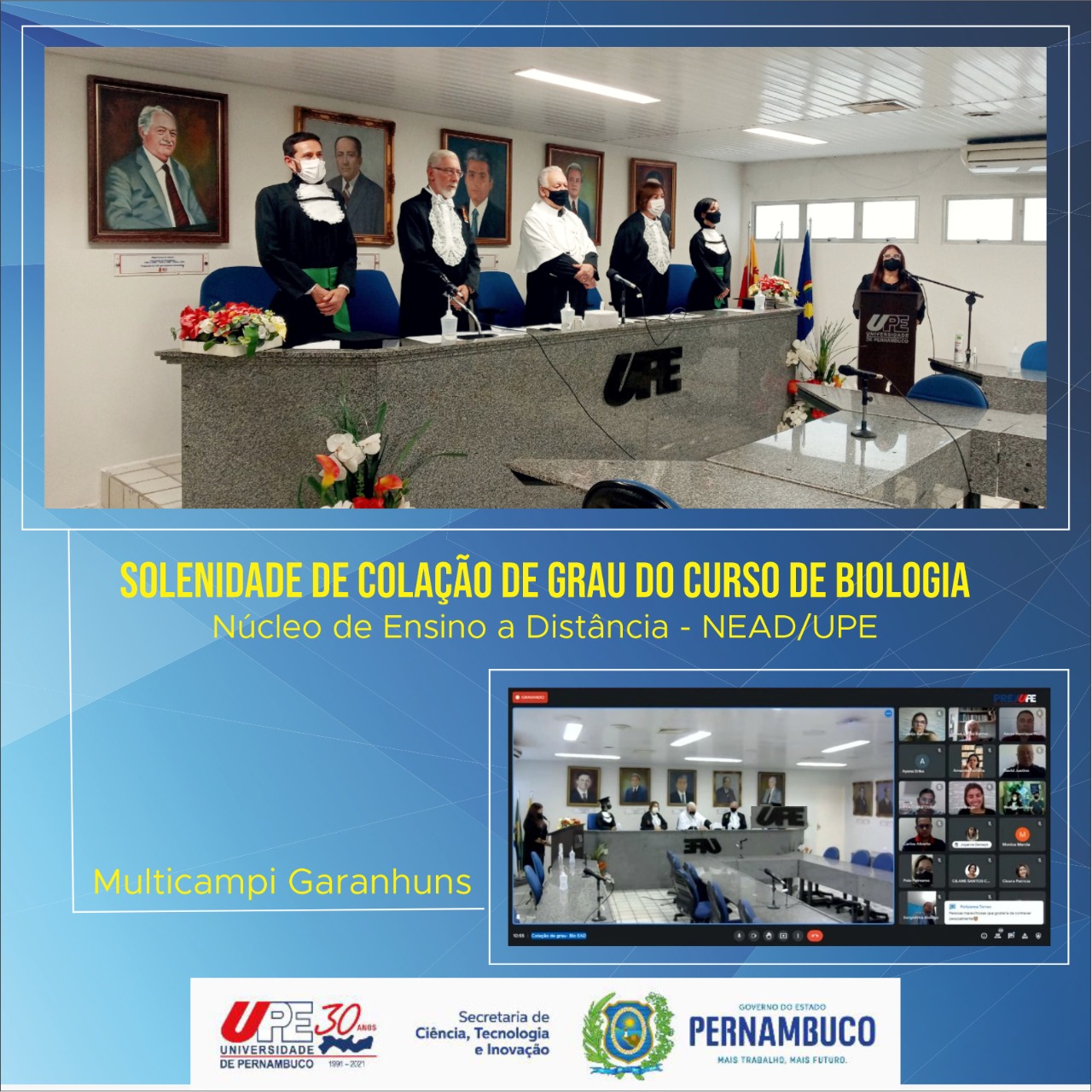 Na manhã desta terça-feira (21), foi realizada uma cerimônia de colação virtual de 40 concluintes do curso de licenciatura em Ciências Biológicas na modalidade de ensino a distância (EAD) da Universidade de Pernambuco.