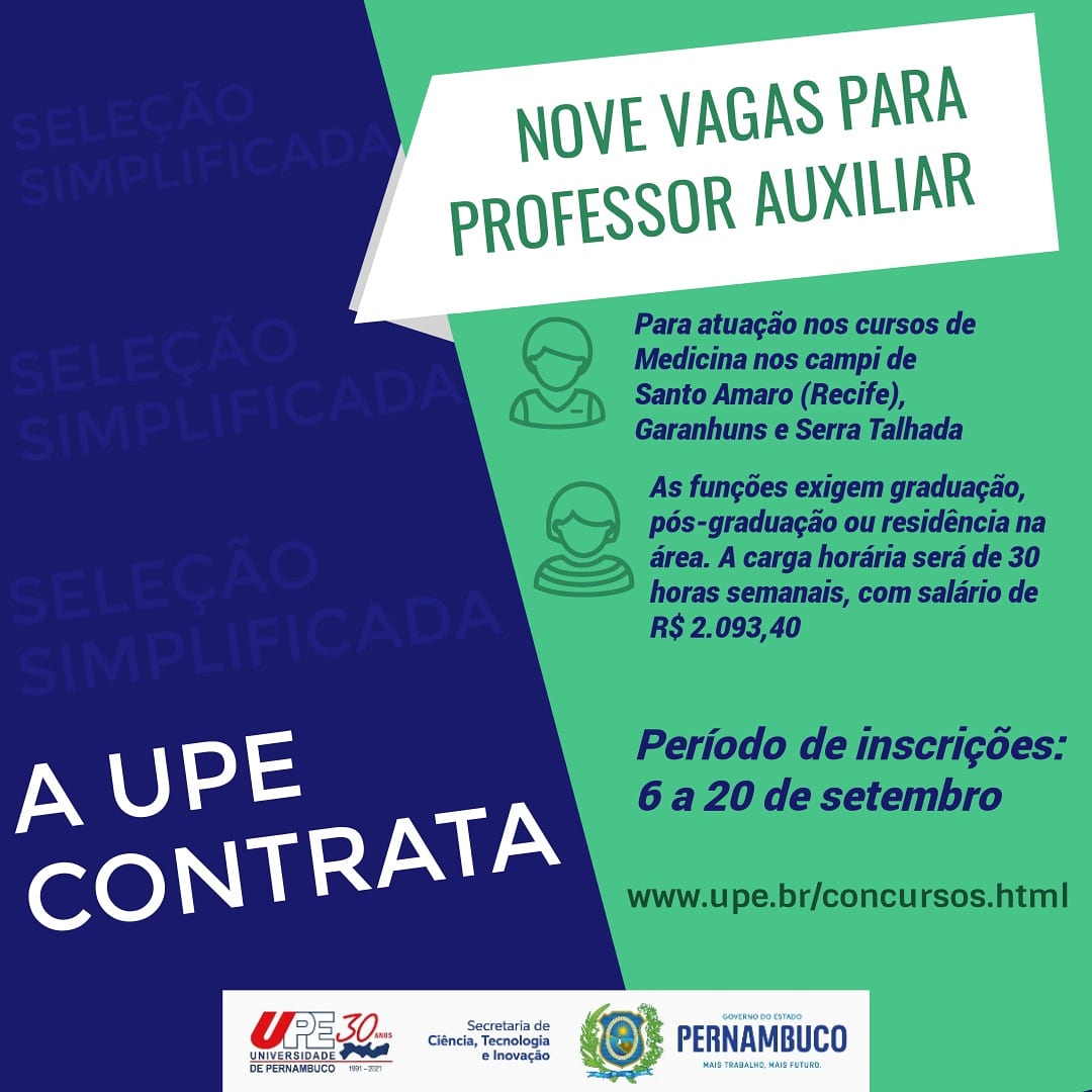 Além das 100 bolsas para o SSA da UPE, o PE no Campus vai destinar 200 bolsas de igual valor aos estudantes do Programa de Incentivo Acadêmico da Fundação de Amparo à Ciência e Tecnologia de Pernambuco (Facepe).