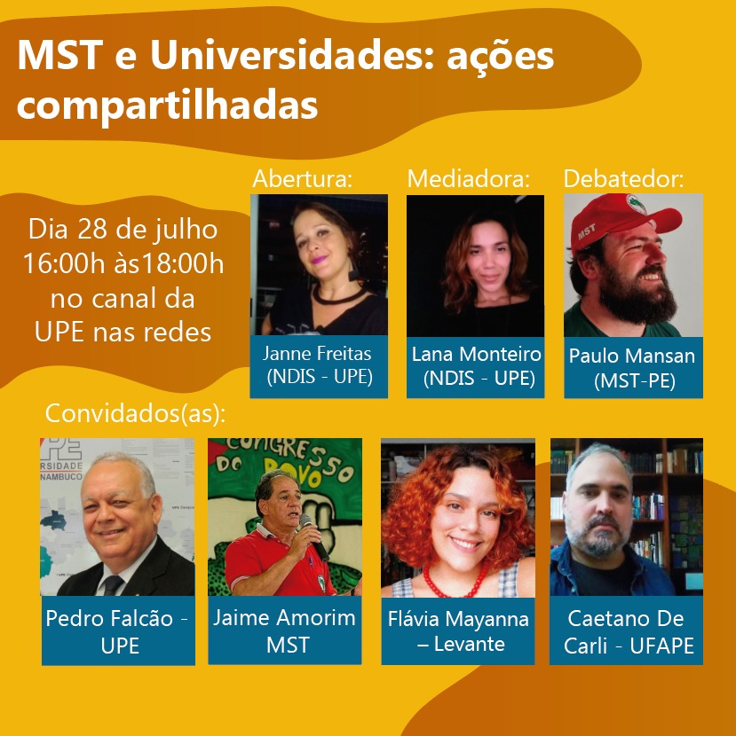 Além da abertura do evento, que contará com a presença do reitor da UPE Pedro Falcão no debate sobre a articulação Universidade-MST em Pernambuco, o JURA reunirá convidados do meio acadêmico e da sociedade civil organizada para debates até o dia 25 de agosto.