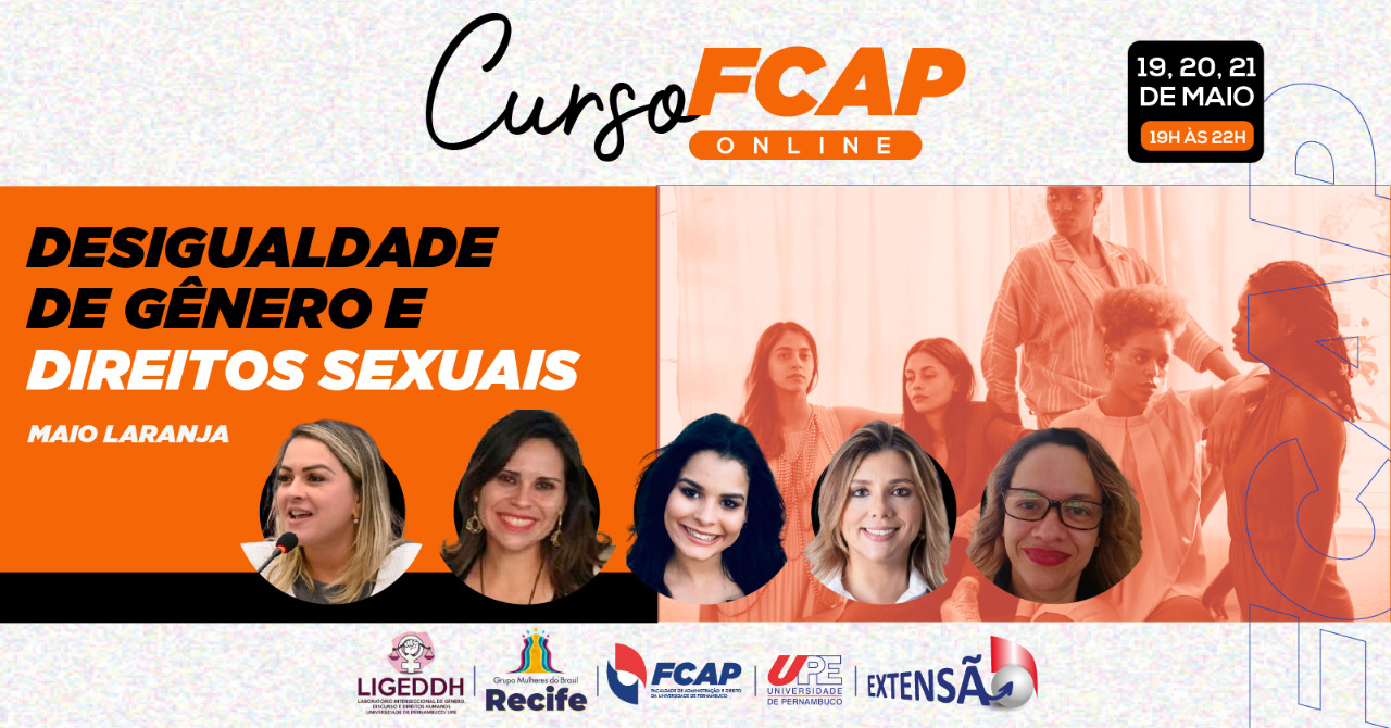 O minicurso Desigualdade de Gênero e Direitos Sexuais - Maio Laranja está com inscrições abertas através do link https://bit.ly/3vTUTF1. A proposta é discutir questões de cidadania, violência sexual, direitos humanos e políticas públicas. Os encontros serão através da plataforma Google Meet nos dias 19, 20 e 21, das 19h às 22h.