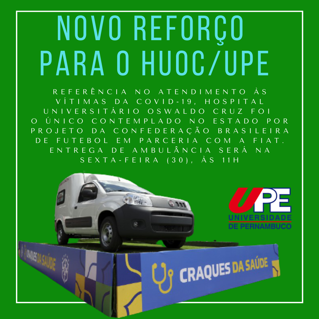 O Hospital Universitário Oswaldo Cruz (HUOC), referência no atendimento às vítimas do coronavírus em Pernambuco, vai receber uma ambulância doada pela Confederação Brasileira de Futebol (CBF) e pela montadora Fiat.