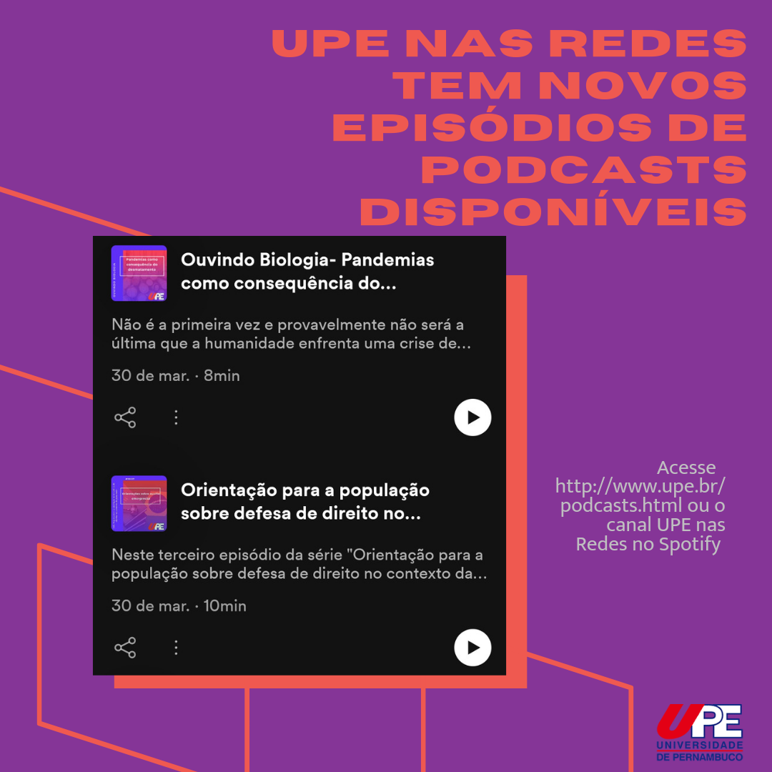 O canal de podcasts da Universidade de Pernambuco (UPE) disponibilizou dois novos episódios de programas do Conhecimento Solidário que abordam a questão da pandemia de Covid-19.