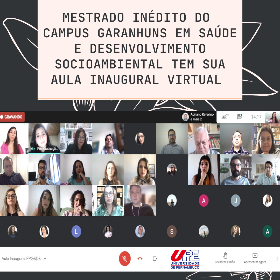A primeira turma do mestrado acadêmico em Saúde e Desenvolvimento Socioambiental do Multicampi Garanhuns da Universidade de Pernambuco (UPE) teve a sua aula inaugural de forma remota na terça-feira (23) com a presença do reitor Pedro Falcão e do secretário de Ciência, Tecnologia e Inovação (Secti) Lucas Ramos.