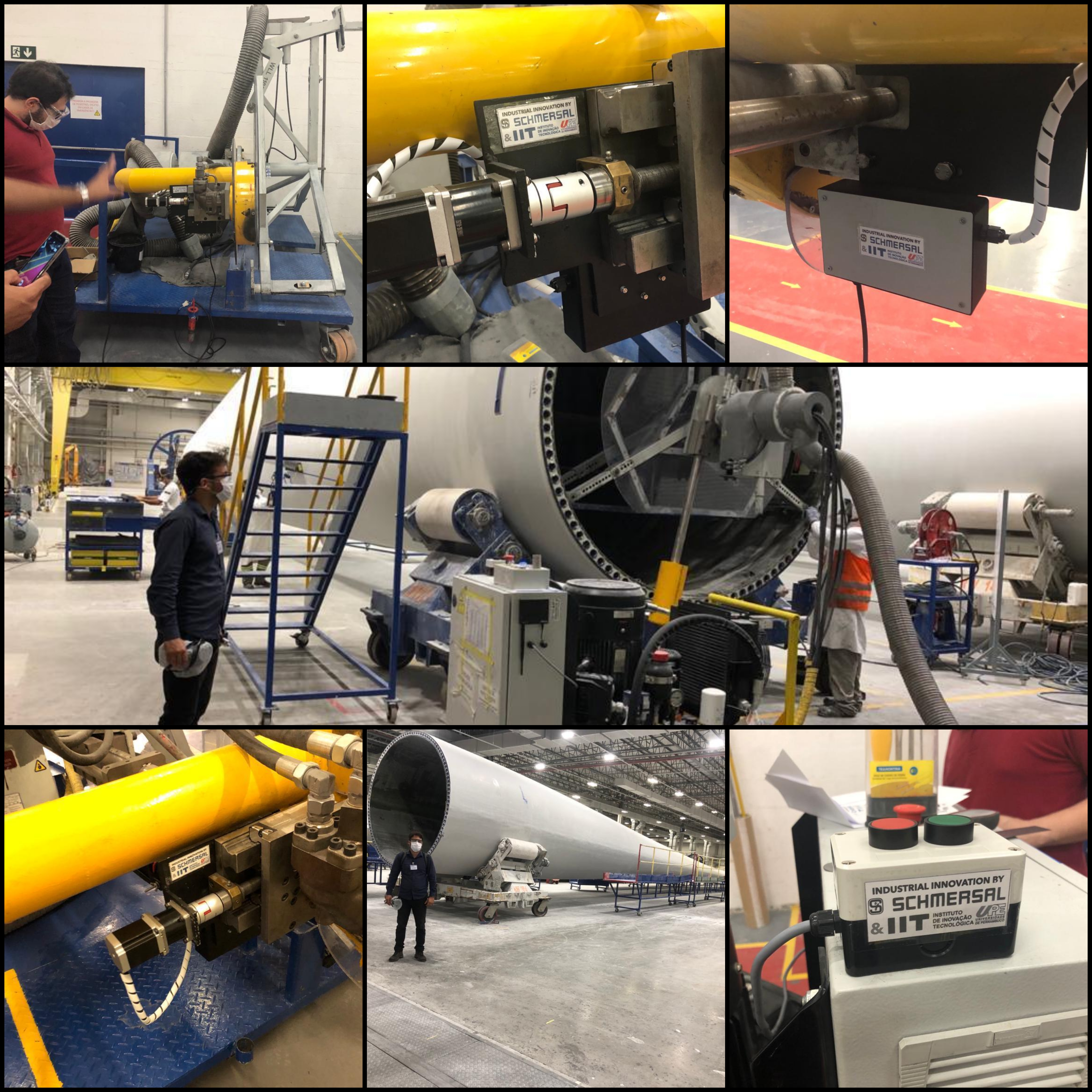Líder mundial em sistemas de segurança para pessoas, máquinas e processos produtivos, a multinacional alemã Schmersal foi contratada pela LM Wind Power para eliminar o risco ao trabalhador na operação do equipamento chamado Root Grinder, que faz o esmerilhamento para garantir a planeza necessária para instalação das pás em cada aerogerador. Ex-aluno da Escola Politécnica da Universidade de Pernambuco, o engenheiro da Schmersal Wesley Paulo dos Santos contatou o IIT/UPE para firmar parceria e desenvolver a solução requerida.