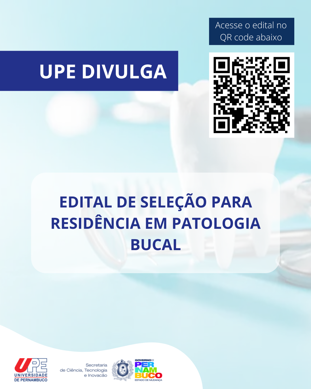 A Universidade de Pernambuco (UPE), por meio do Instituto de Ciências Biológicas (ICB), do Hospital Universitário Oswaldo Cruz (HUOC) e do Centro Integrado de Anatomia Patológica (CIAP), está com inscrições abertas para o Processo Seletivo da Residência Uniprofissional em Patologia Bucal, com ingresso previsto para 2026.