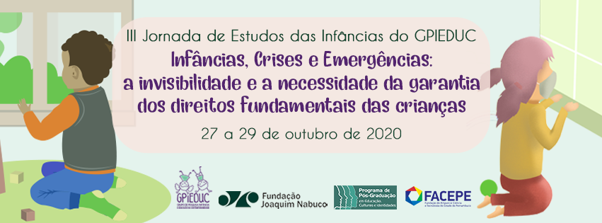 O Grupo de Pesquisas, Infância e Educação na Contemporaneidade: estudos interdisciplinares (GPIEDU) da Universidade de Pernambuco (UPE) realiza, de forma online, no canal do grupo na plataforma do Youtube, entre os dias 27 a 29 de outubro, a III Jornada de Estudos das Infâncias. As inscrições podem ser feitas através do link: https://www.even3.com.br/JornadaGPIEDUC2020 .