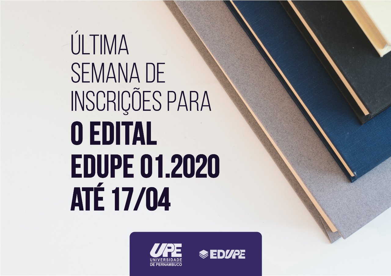 As inscrições pra o edital da Editora da Universidade de Pernambuco (Edupe/UPE) no 001/2020 para produção e edição de livros terminam na próxima sexta-feira (17/04).
