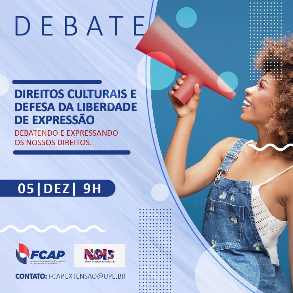O direito da liberdade de expressão é fundamental para um país mais ético e democrático. Por este motivo e para comemorar seus 10 anos de criação, o Núcleo de Diversidade e Identidades Sociais da Universidade de Pernambuco (Ndis/UPE) promove, no próximo dia 05 de dezembro, o debate - “Direitos Culturais e Defesa da Liberdade de Expressão".