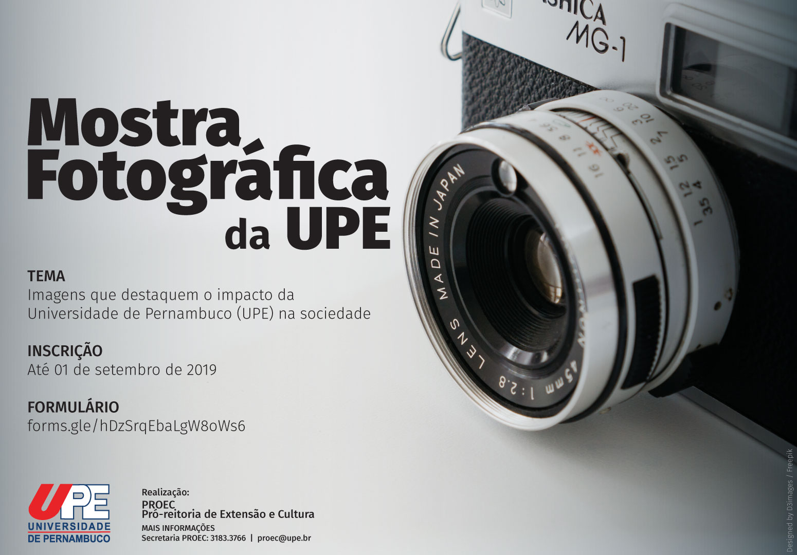 Estão abertas, até o dia 01/09, as inscrições para “I Mostra Fotográfica da Universidade de Pernambuco (UPE)”. O edital objetiva o fomento da produção de imagens que destaquem o impacto da Universidade na sociedade.