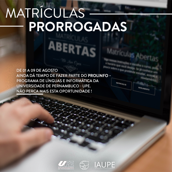 Atendendo a solicitações, o Programa de Línguas e Informática da Universidade de Pernambuco (Prolinfo/UPE) prorrogou o período de matrículas para este segundo semestre de 2019.