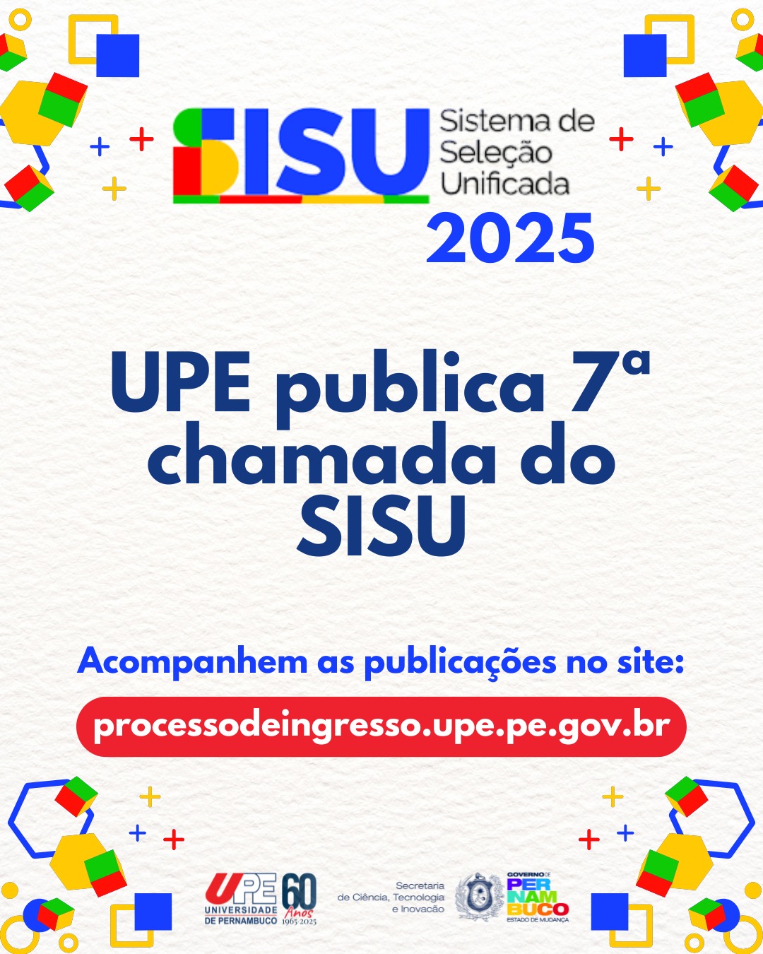 A Universidade de Pernambuco (UPE) informa que a listagem atualizada da 7ª chamada do SISU foi publicada no site do Processo de Ingresso.
