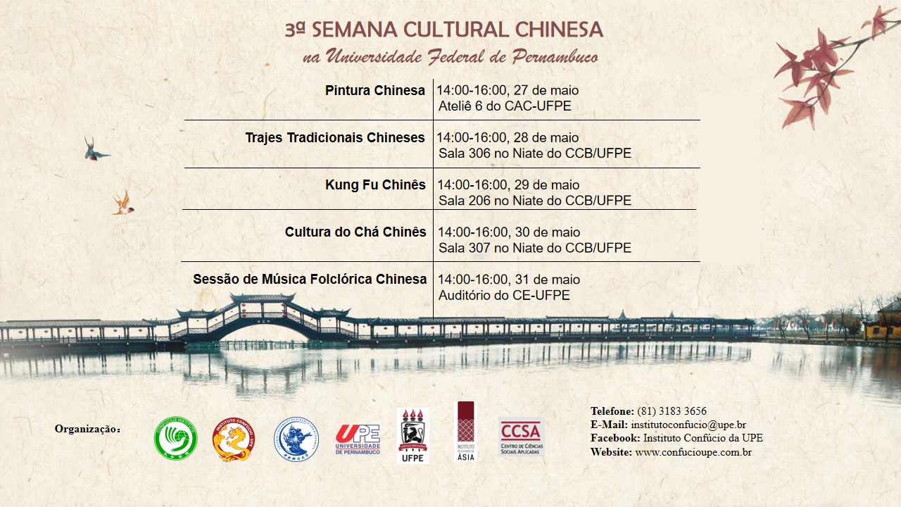 Entre os dias 27 a 31 de maio, o Instituto Confúcio da Universidade de Pernambuco (UPE) promove a "III Semana Cultural Chinesa".