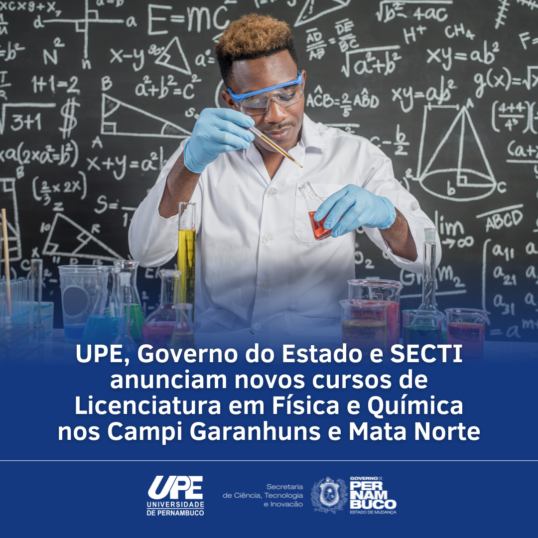 Na última sexta-feira, durante o lançamento do INOVAPE, realizado nas instalações do Palácio do Campo das Princesas, a Universidade de Pernambuco (UPE) anunciou a criação dos cursos de Licenciatura em Física e Química, no Campus Mata Norte, e Licenciatura em Química no Campus Garanhuns, que funcionarão a partir de 2026. A expansão das graduações tem o objetivo de atender a uma demanda apresentada pelo Governo do Estado de Pernambuco, que busca diminuir o déficit de professores nas áreas de STEM (ciências, tecnologia, engenharias, matemática).