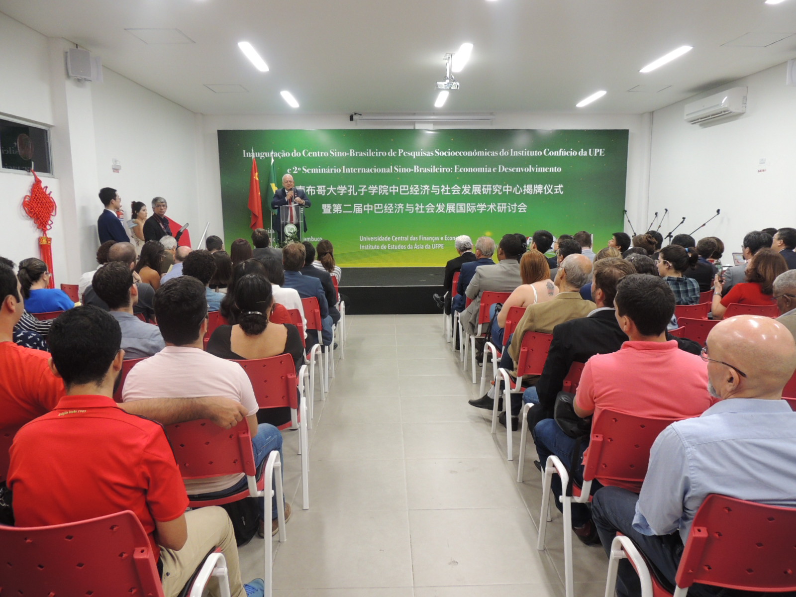 A Cônsul Geral da China no Recife, Sra. Yan Yuqing, o secretário de Ciência, Tecnologia e Inovação (Secti), Aluíso Lessa, o assessor do reitor da Universidade Central de Finanças e Economia de Pequim (CUFE), Li Tao, o diretor chinês do instituto, Peng Xiantang também proferiram seus discursos.