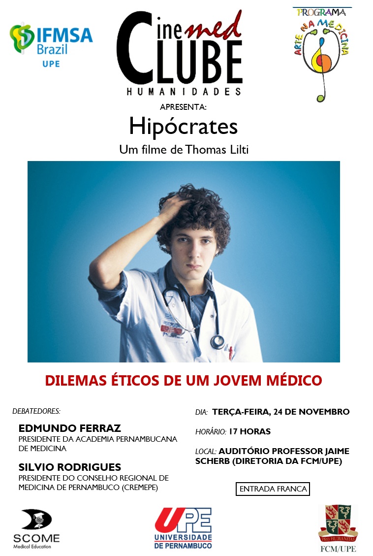 Na próxima terça-feira (24/11), às 17h, o CineMed Clube Humanidades apresenta “Hipócrates”, um filme de Thomas Lilti, que fala sobre os dilemas éticos de um jovem médico. A sessão acontece no auditório Professor Jaime Scherb, da Faculdade de Ciências Médicas da Universidade de Pernambuco, com entrada franca e aberta ao público.