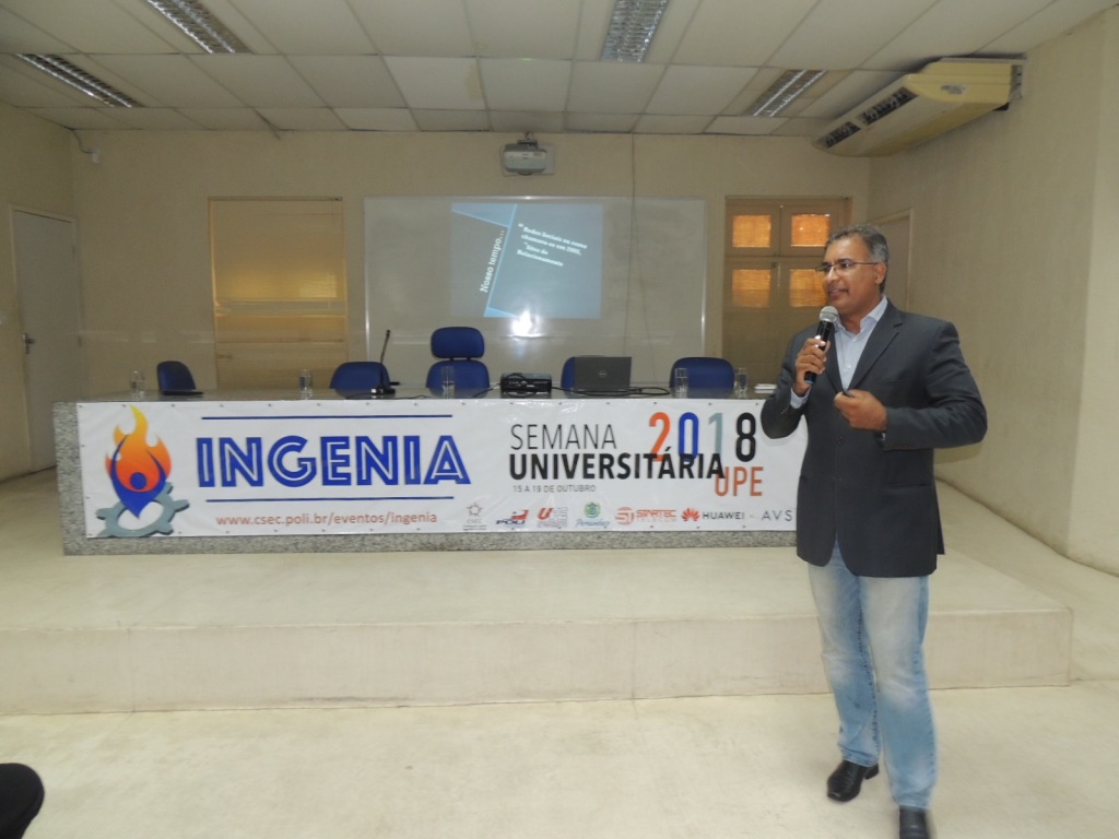 O Reitor da Universidade de Pernambuco (UPE), Prof. Pedro Falcão prestigiou, nesta terça-feira (16/10), na Escola Politécnica de Pernambuco (Poli), a abertura do INGENIA 2018, evento integrante da Semana Universitária.