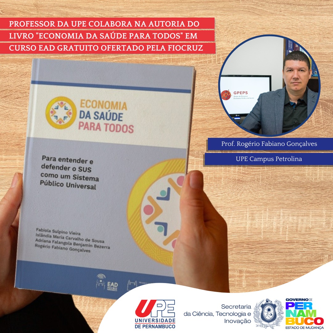 O professor do campus Petrolina da Universidade de Pernambuco (UPE), Rogério Fabiano Gonçalves, é um dos quatro autores do livro “Economia da Saúde para todos”, que carrega o nome do curso EAD, servindo de referência para os estudos nesse curso, e será ofertado gratuitamente pela Fiocruz.