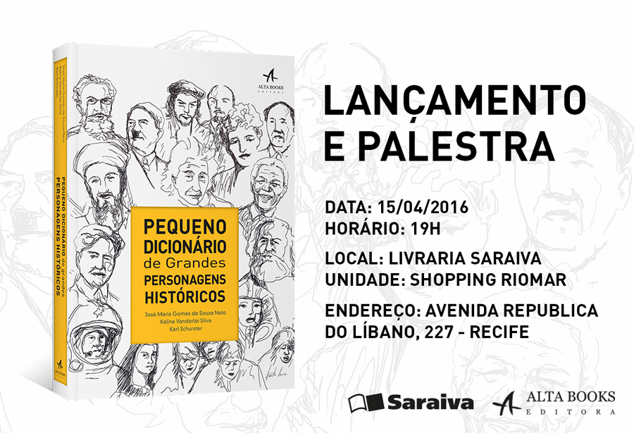 “O Pequeno Dicionário de Grandes Personagens Históricos” é o título do novo livro dos professores da Universidade de Pernambuco (UPE), Karl Schurster, que também é coordenador de desenvolvimento da Graduação da instituição, José Maria Gomes de Souza Neto e Kalina Vanderlei Silva.