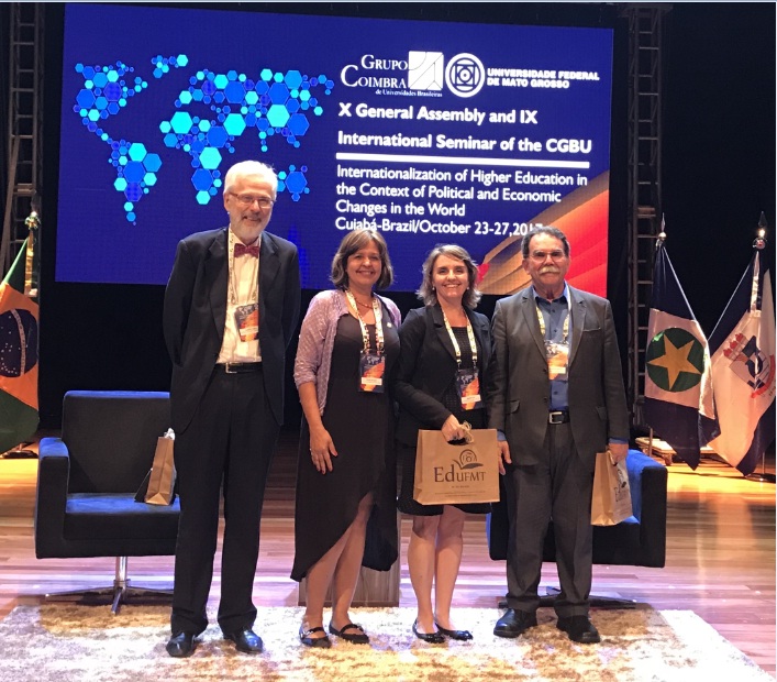 O assessor de Relações Internacionais, a Pró-Reitora e a Coordenadora Geral da Pós-Graduação, Pesquisa e Inovação da Universidade de Pernambuco (Propegi/UPE), José Guido Correia de Araújo, Tereza Cartaxo e Betânia da Mata, respectivamente, representaram a universidade no IX Seminário Internacional e X Assembleia Geral do Grupo Coimbra de Universidades Brasileiras, que teve início na última segunda-feira (23/10) no teatro da Universidade Federal do Mato Grosso, em Cuiabá.