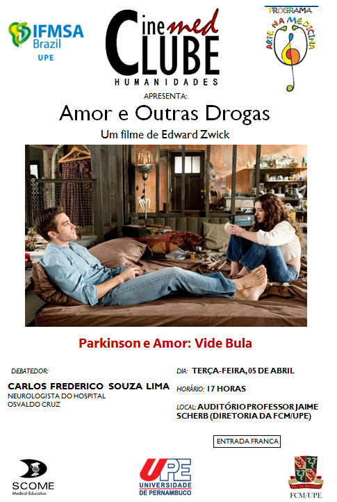Na próxima terça-feira (05/04), às 17h, o CineMed Clube Humanidades apresenta “Amor e outras drogas”, um filme de Edward Zwick, que fala sobre o a relação entre o mal de Parkinson e amor. A sessão acontece no auditório Professor Jaime Scherb, da Faculdade de Ciências Médicas da Universidade de Pernambuco, com entrada franca e aberta ao público.