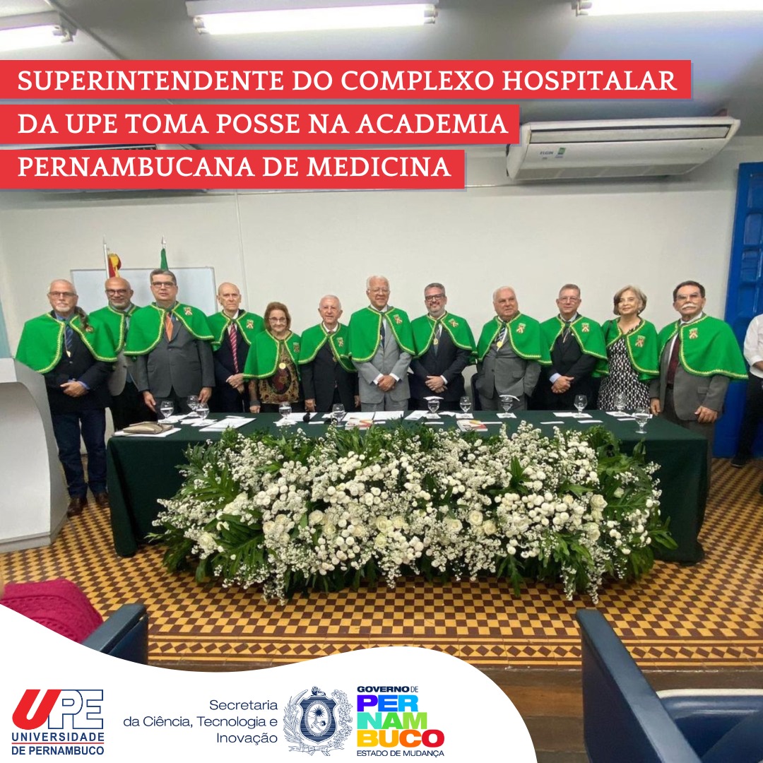 Nesta terça-feira (18), o Superintendente do Complexo Hospitalar da UPE, o médico Gustavo Trindade Henriques Filho, tomou posse como acadêmico na Academia Pernambucana de Medicina (APM). O novo integrante da instituição assumiu a cadeira 31, que tem como patrono o Prof. Dr. Geraldo de Andrade. O assento já foi ocupado pelo Prof. Dr. Armínio de Lalor Mota (UFPE), Prof. Dr. Hindenburg Tavares de Lemos (UPE) e o Prof. Dr. Gustavo Trindade Henriques (UPE), pai do Dr. Gustavo Trindade Henriques Filho. Durante o evento, o novo acadêmico foi apresentado pela Profa. Dra. Ester Azoubel, além de receber os cumprimentos do Presidente da APM, Prof. Dr. Hildo Azevedo.