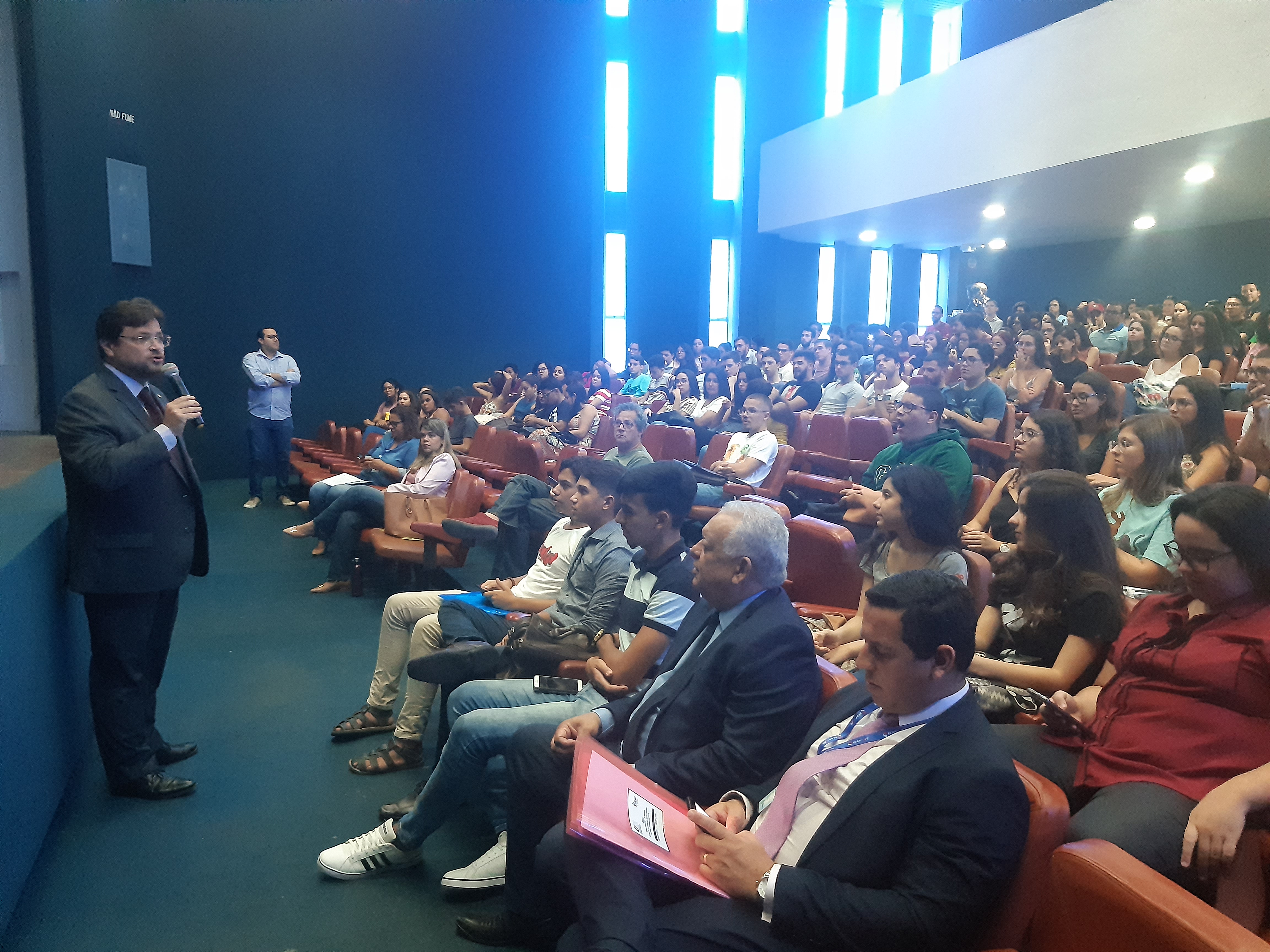 O reitor fez uma saudação de boas vindas aos alunos que estão ingressando na Universidade esse ano, e aos alunos veteranos, ressaltando a importância da participação dos estudantes no mercado de trabalho com foco na construção de uma sociedade mais justa e igualitária.