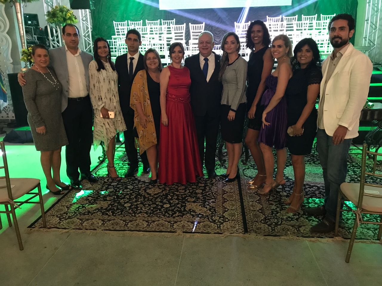 Compuseram a mesa: o diretor dos campi da UPE em Garanhuns, Caruaru, Garanhuns, Serra Talhada e Salgueiro e madrinha da turma, Profa. Rosângela Falcão, a coordenadora do curso, Profa. Ana Cristina de Pinho Monteiro Sartori Alho, a vice-coordenadora do curso, Profa. Sinara Vitalino de Almeida, o padrinho da turma, Prof. Antônio de Oliveira da Silva Filho, e a patronesse da turma, Profa. Regia Maria Batista Leite.